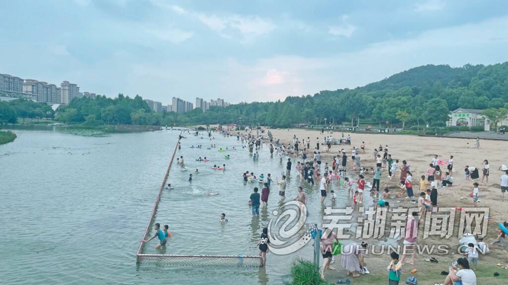 “我也是看别人在朋友圈发的来这里玩,才带着孩子来的,孩子玩得很高兴。一直到天黑,家长们还打着手机灯光照着亮陪孩子在这里玩。”一名带孩子来玩的家长表示,今年这片水域拉了一条网,网以内都是浅水区,孩子们都是在浅水区玩,比较安全,公园基础设施也比较齐全周到,旁边有超市、便民服务点,有水吧,还有沙滩冲洗区,家长也相对放心。