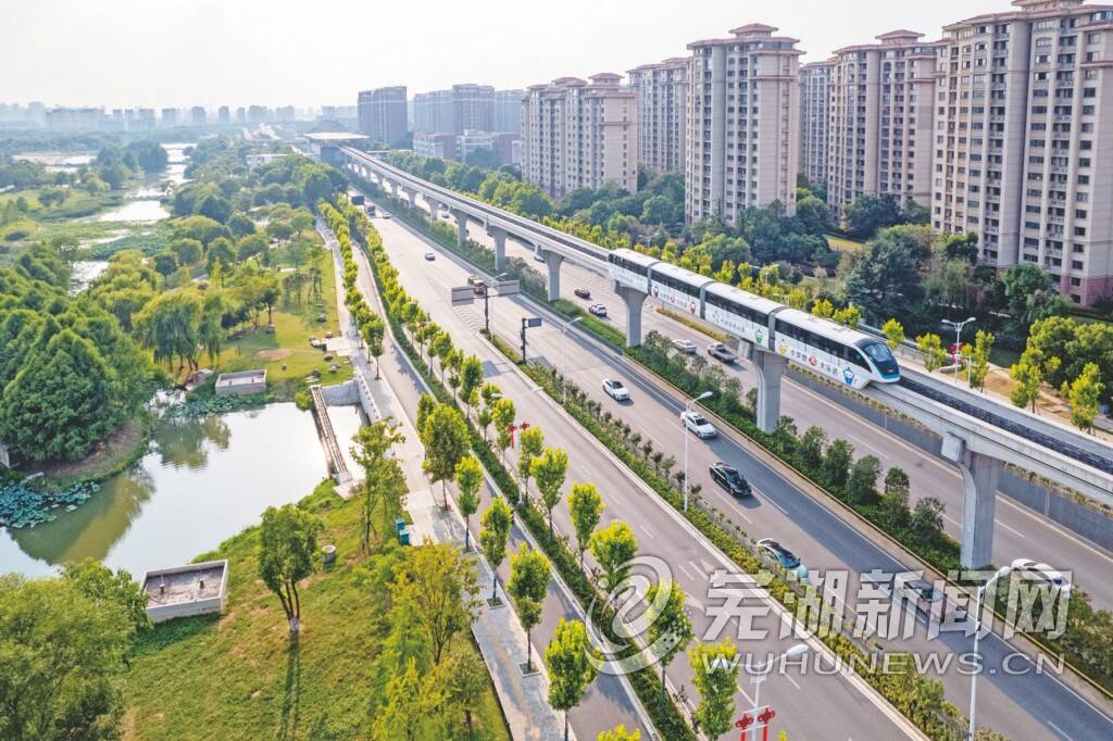 林城相依美如画 字体大小: T T 2023-08-16 01:11 8月10日,赤铸山路上,单轨列车在绿树成荫中穿行而过。近年来,我市大力实施国土绿化工程,森林覆盖率已达28.62%,森林蓄积量达806万立方米,进一步筑牢生态屏障。芜湖日报记者 梅韬 摄