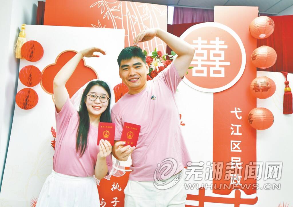 8月22日,是我国传统佳节“七夕”,芜湖市各婚姻登记处迎来结婚登记“甜蜜小高峰”,378对新人喜结连理,拿到属于自己的“红本本”,幸福牵手步入人生新阶段。