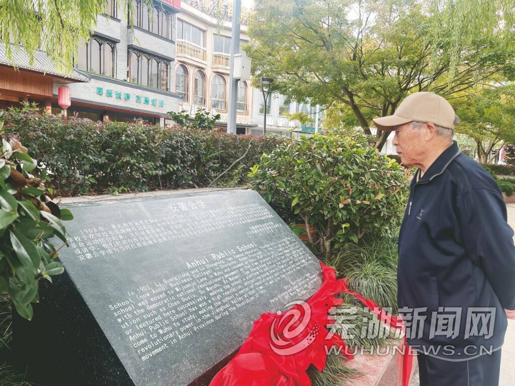 现场,芜湖民俗学者龚英柏讲述了芜湖微市史微党课,李光炯先生后人,学院领导、教师等纷纷与安徽公学碑合影留念,追忆历史。很多市民也纷纷驻足,仔细阅读石碑内容,了解安徽公学在中国近现代史上的传奇辉煌。