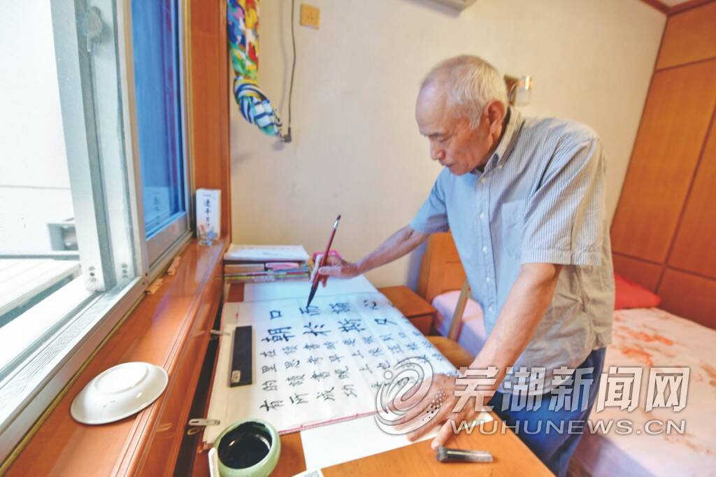 一直以来,许孝圣就有个心愿,希望自己苦练出来的书法可以得到肯定。今年6月,他的书法作品在“欢乐芜湖 翰墨鸠兹”芜湖市书法双年展展出,受到业内人士和书法爱好者的好评。他说:“我当时只是想,自学了这么多年,我的书法到底是什么水平,参加书法展就是想让专家和书法爱好者点评一下。”
