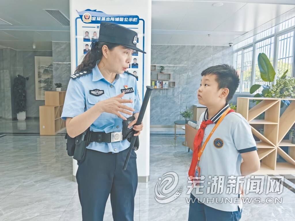 在芜湖市公安局鸠江分局官陡派出所有这样一位女警官,她用29年的坚守,诠释了人民警察的忠诚与担当。7月22日上午,小记者晋羽轩在记者带领下,怀着对人民警察、对“芜湖好人”的崇敬之心,走进了这个充满正义与温情的地方,聆听并记录下教导员杨芬的故事。杨芬叮嘱晋羽轩:“树立正确的人生观,朝着梦想脚踏实地努力。”