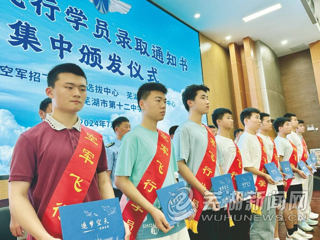 7月25日上午,芜湖市空军飞行学员录取通知书颁发仪式在芜湖市十二中举行。今年,芜湖市共为空军培养输送了9名合格飞行学员,其中2名学生成为北京大学、清华大学、北京航空航天大学“双学籍”联合培养遴选对象。