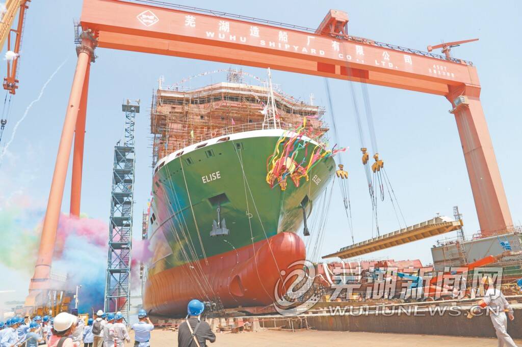 昨日,由芜湖造船厂建造的安徽本年度最大的14600载重吨重吊船顺利下水。该船的建造,正式拉开芜湖造船厂民船批量化、系列化制造的序幕,奠定了芜船在欧洲高端多功能船舶行业的领先地位,进一步推动了芜船“做强民品”战略的落地生根。