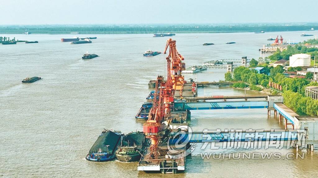 近日,繁昌区长江航道新港段,码头上的起重设备正在紧张有序地进行装卸作业,现场一派繁忙。