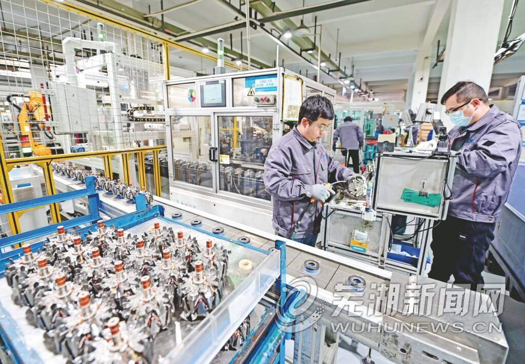 位于鸠江经济技术开发区的芜湖杰诺瑞汽车电器系统有限公司是集研发、制造、销售汽车起动机、发电机、BSG电机和新能源驱动电机及控制器系统于一体的高新技术企业,其发电机产品批量出口海外多个地区。图为公司繁忙的生产线。