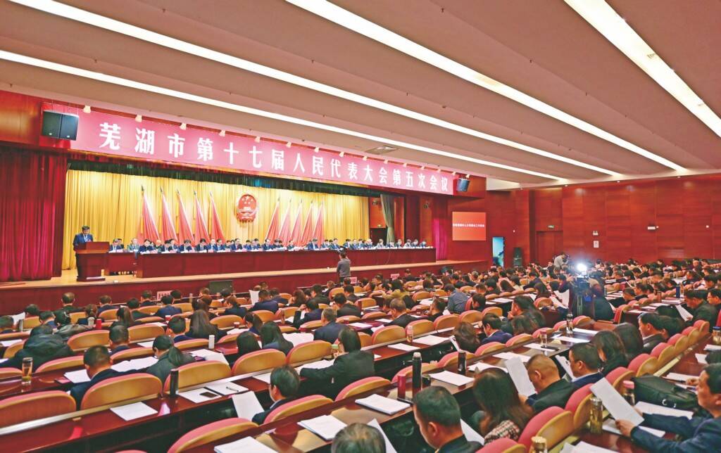 市十七届人大五次会议举行第二次全体会议。 芜湖日报记者 杨大伟 摄