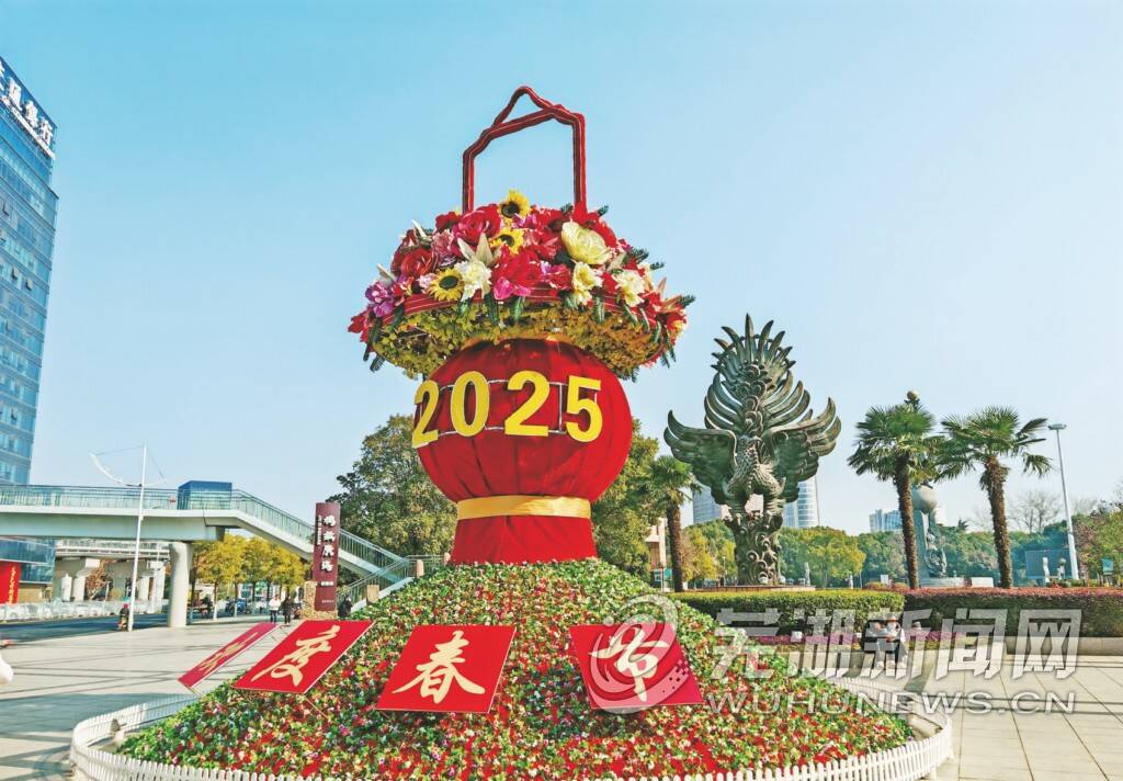春节临近,我市张灯结彩,处处洋溢着欢乐、喜庆、祥和的节日气氛。图为步行街上摆放的迎新春大花篮。
