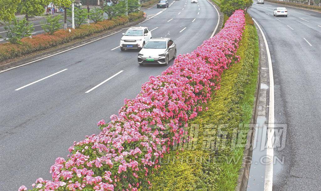昨日,记者在弋江路隔离绿化带看到蔷薇花开得正盛,一层层一簇簇,形成了一道亮丽、独特的风景线。