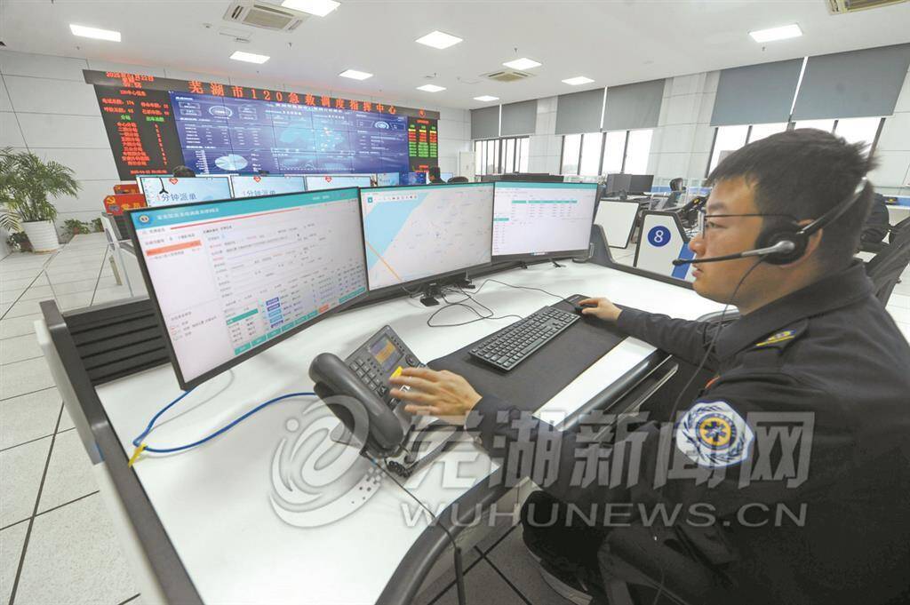 “您好,芜湖120,有什么需要?”4月22日上午7时39分,芜湖市急救中心调度大厅里,电话铃声响起,湾沚区榆林路一位居民突然晕倒。三号台调度员立刻询问信息,安排急救车组。