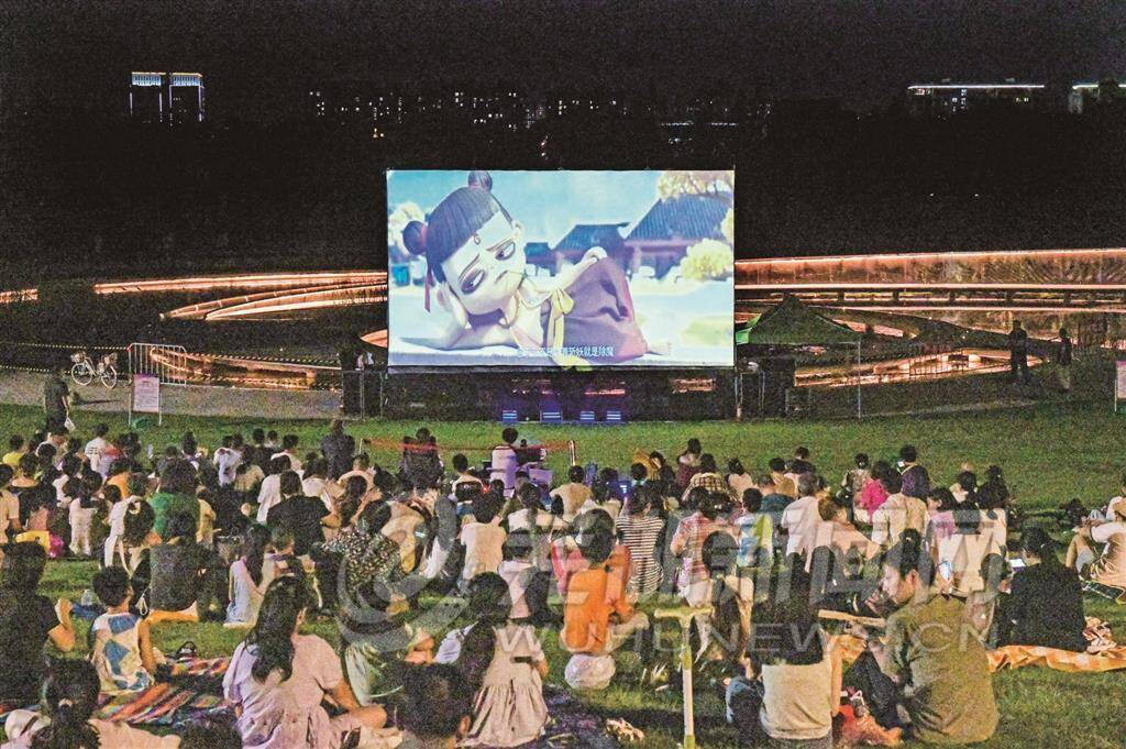 8月15日、16日两晚,2025“您点我放——游神山公园 看露天电影”如约进行,分别放映了影片《哪吒之魔童降世》《哪吒之魔童闹海》。据不完全统计,莲心舞台前草地上观影的市民数量达到今年活动新高,不少观众是亲子共同观影,一家人都是这一优秀国漫系列的“粉丝”。