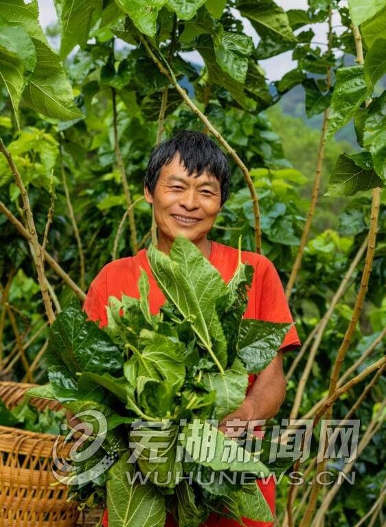 手抱桑叶,新林村村民李平畅满是喜悦。 攀枝花市融媒体中心见习记者 杨晶尧 摄