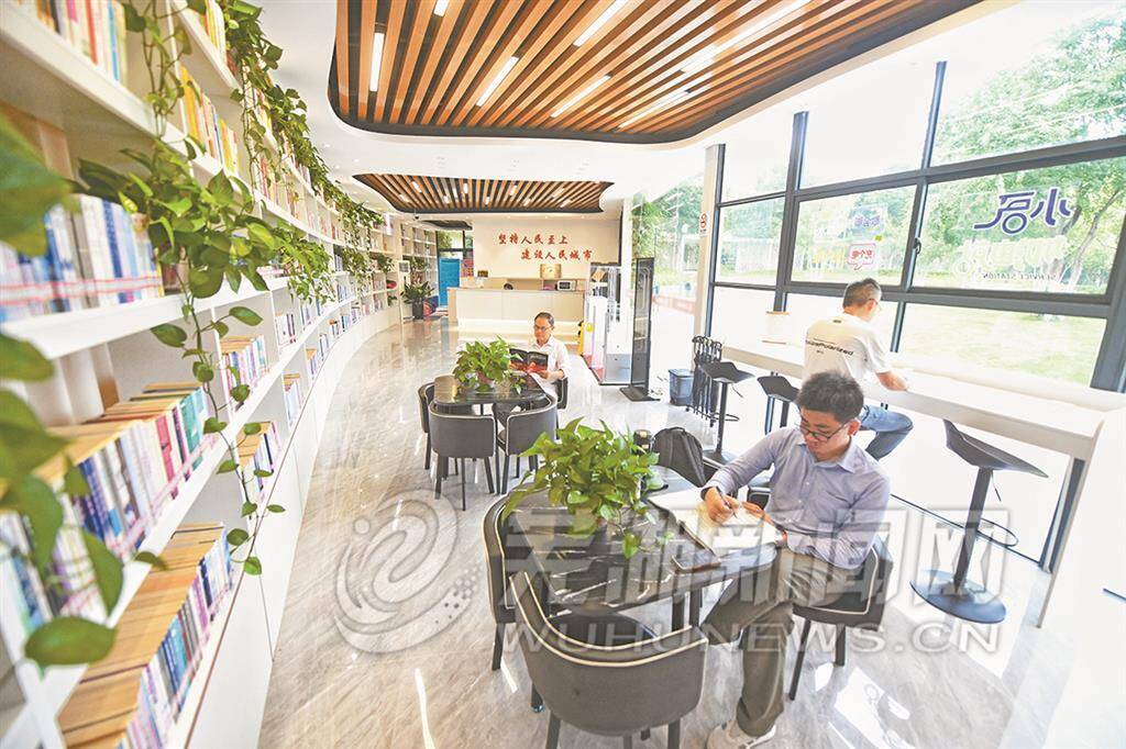 从2022年至今,芜湖已建成并开放43座人民城市驿站,这些驿站集用餐、休息、阅读、应急等功能于一体,已成为城市户外工作者的“暖心窝”,百姓家门口的好去处。图为市民们在位于弋江中路上的志喜园人民城市驿站内读书。