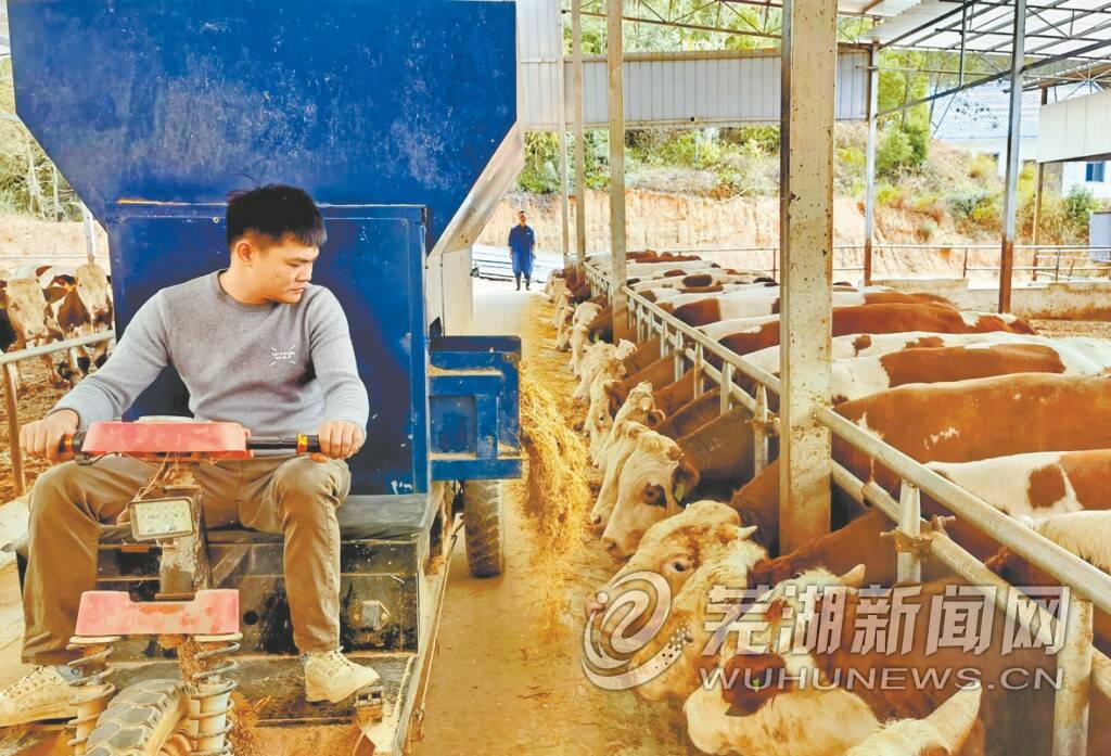 “哞哞……”叫声起处,一排排整齐的牛舍映入眼帘,体格健壮的牛儿正悠闲啃食草料。不远处,粪便生态处理区有序运转。“牛粪尿先干湿分离,渣子发酵晒干,卖给种植户当肥料;液体经发酵池曝氧净化,流入池塘养鱼,池塘水再浇灌周边牧草,真正实现‘零排放’。”工作人员告诉记者。