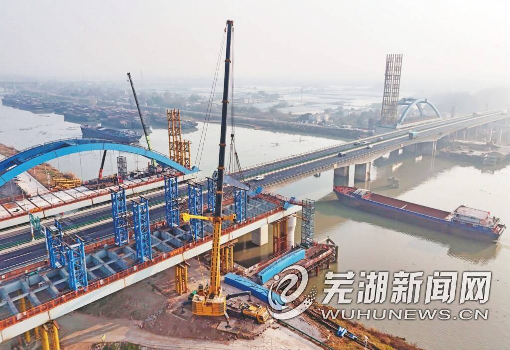 12月11日,裕溪河特大桥项目建设正酣,建设者正抢抓工期有序施工,该项目是商合杭铁路芜湖长江公铁大桥公路连接线的重要一部分,该连接线建成后,将商合杭铁路芜湖长江公铁大桥与G5011芜合高速公路快速连接,有效缓解现有芜湖长江大桥的通行压力。