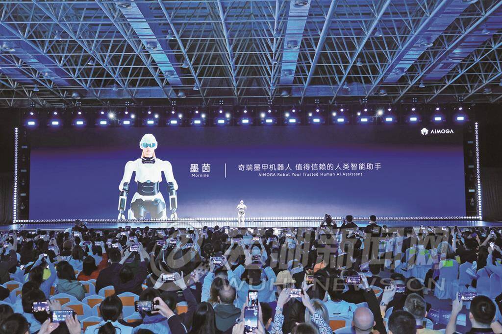 图为“墨茵”在奇瑞创新大会上首次登台发布。(图片由安徽墨甲智创机器人科技有限公司提供)
