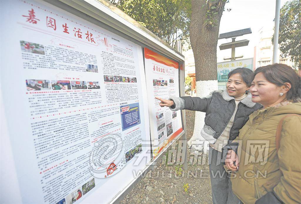 “别看‘报纸’版面不多,但社区里的大事小情,记录得清楚明了,都是大家关心的内容。”1月16日,在弋江嘉园一期中心广场宣传栏前,居民李水银边阅读最新一期的《嘉园生活报》边说道。记者看到,2026年1月期的这份社区报,既有对过去一年社区“微更新、微治理、微服务”的盘点,也有新上任的社区党委书记陶良义有关新一年展望的诚恳“有话说”;既有上个月“萤火积分”制度启动、庆元旦游园会等活动的生动回顾,也有关于禁止燃放烟花爆竹的最新通告……