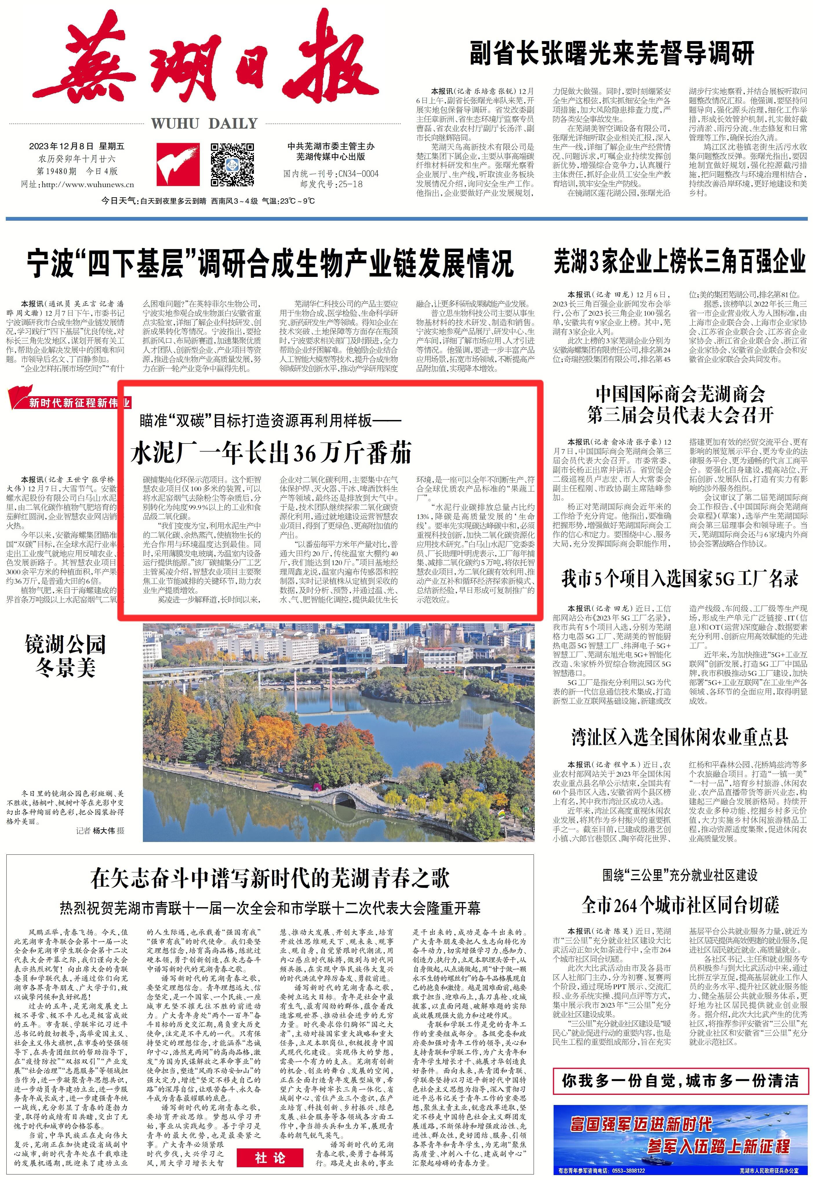 图4.2023年12月8日芜湖日报 《水泥厂一年长出36万斤番茄》参评中国新闻奖